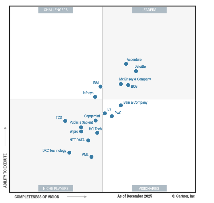 Gartner® Magic Quadrant™ for Digital Technology and Business Consulting Services by: Sundar Viswanathan, Tom Sieber, Mark Whitehouse, Tsuyoshi Ebina, Luis Pinto, Matthew Brown, Alan Stanley, January 12, 2026